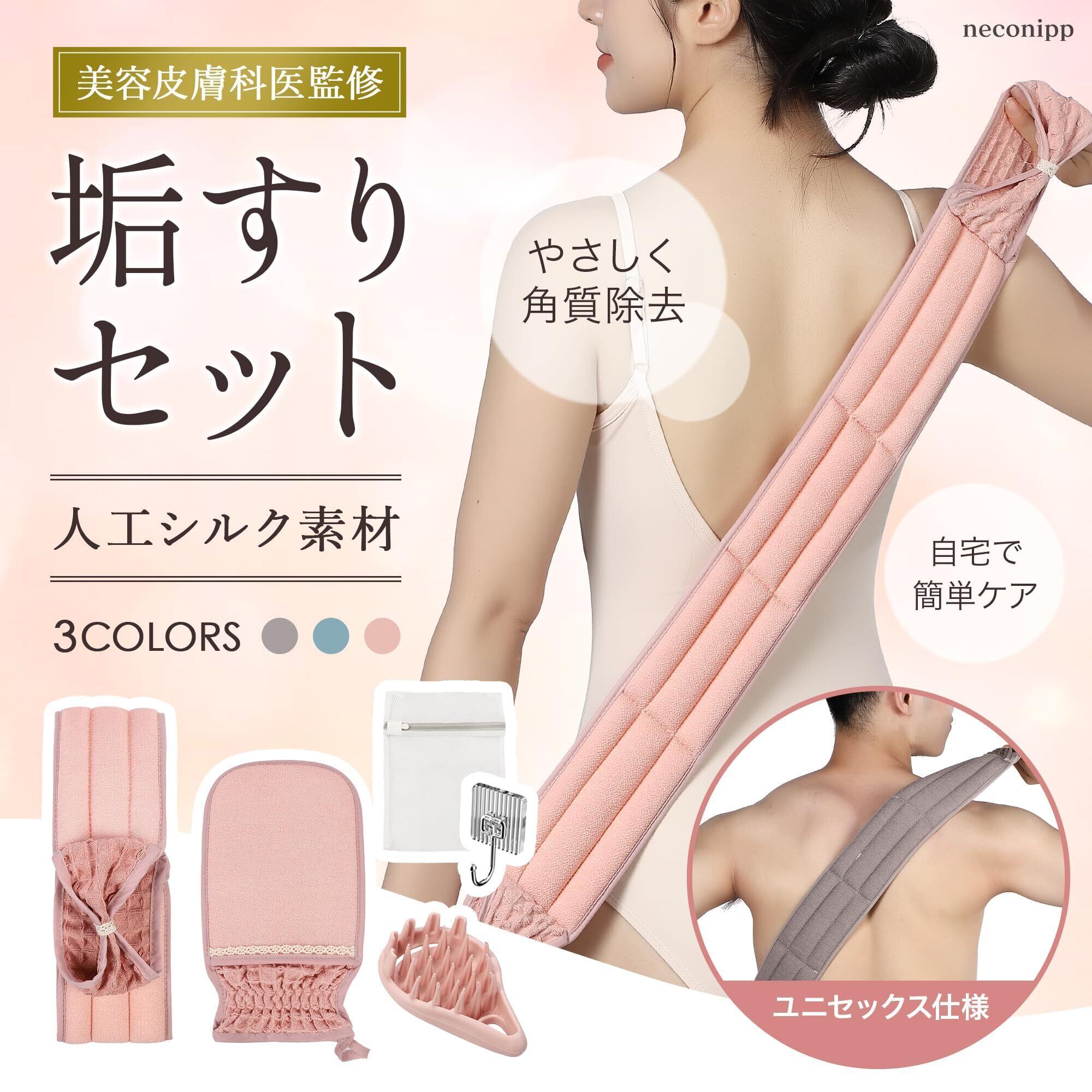 【 医師監修/雑誌掲載 】 あかすり あかすりタオル あかすりミトン 垢すり 頭皮マッサージブラシ セット 敏感肌 人工シルク 肌のブツブツ 膝の黒ずみ 肘 体臭 ケア 美肌 (グレー)