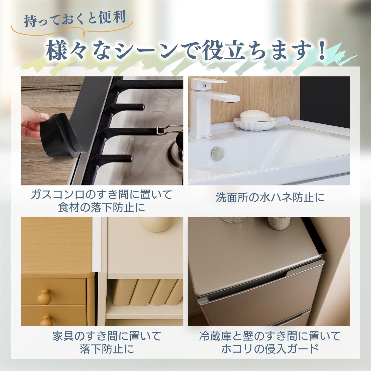 隙間を埋めるだけで水はねを防止: 洗面台やコンロの隙間に置くだけで、水はねや油はねを防止できる便利な製品です。