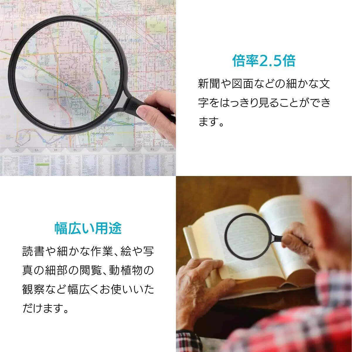 倍率2.5倍で新聞や図面などの細かな文字をはっきり見ることができます。読書や細かな作業、絵や写真の細部の閲覧、動植物の観察など幅広くお使いいただけます。