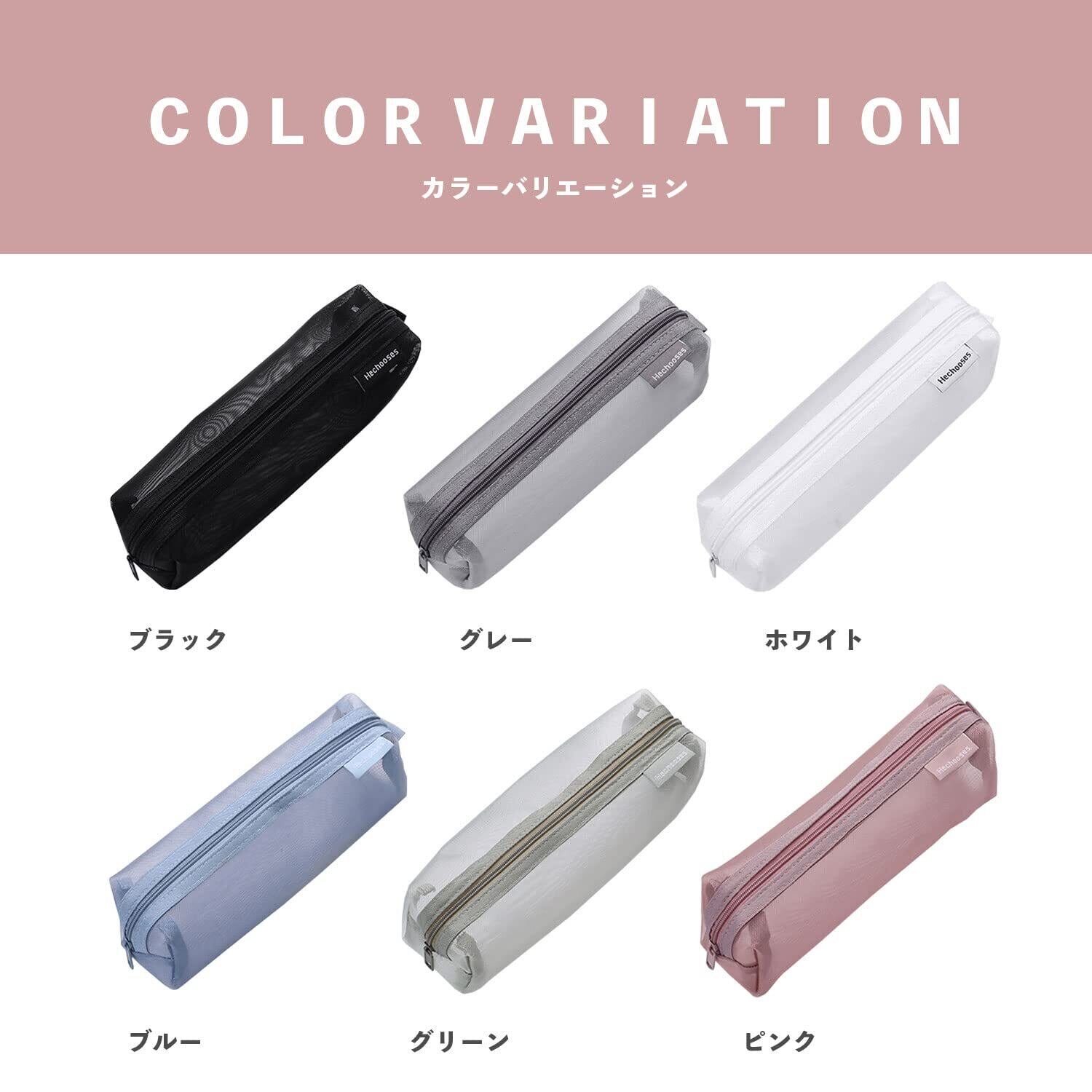 GRmkt ペンケース メッシュ 筆箱 シースルー 文房具 鉛筆 ファスナー ペンホルダー シンプル 整理 軽量 コンパクト 学生 ビジネス ブラック 黒