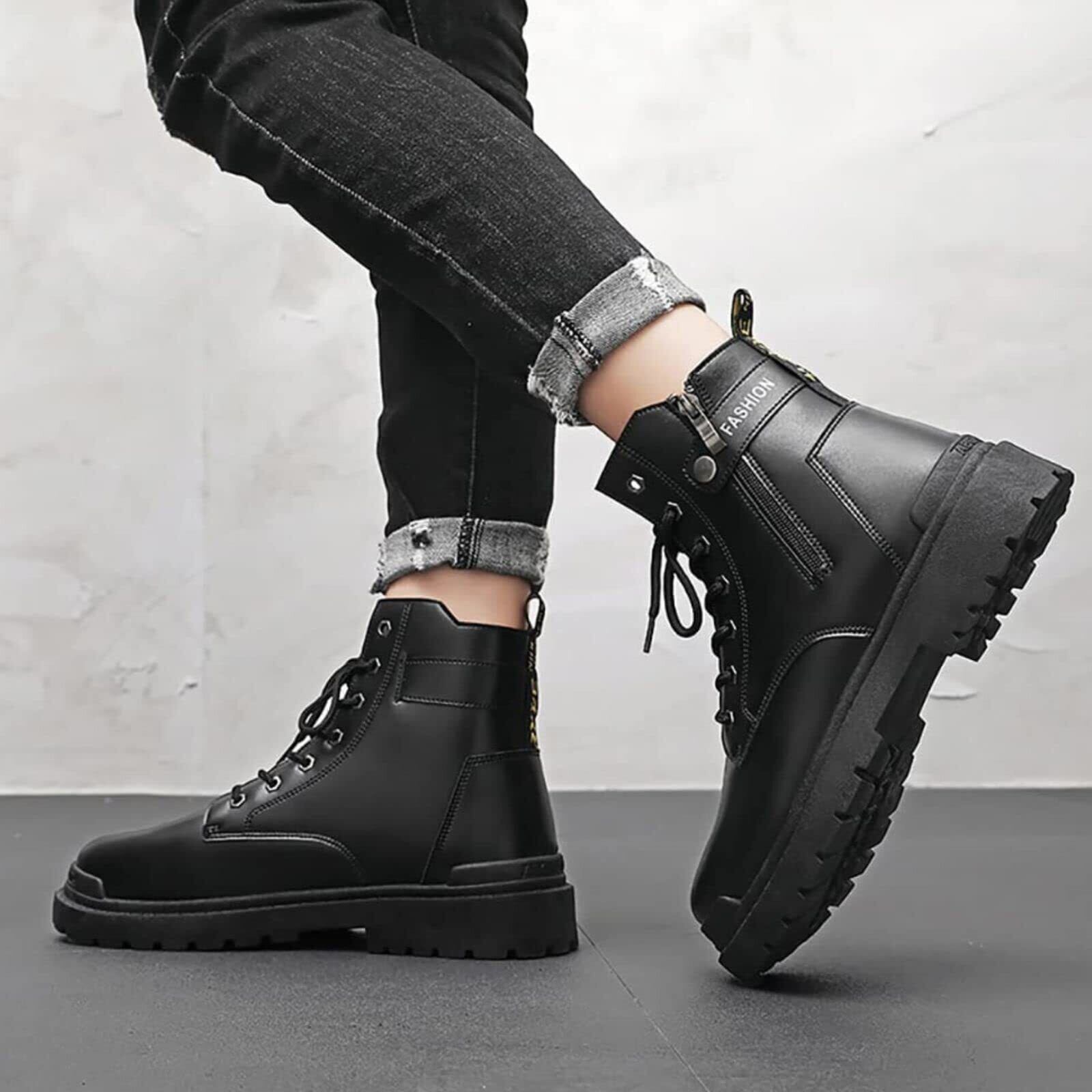 [PLEAVIT] バイクブーツ ライディングブーツ ライダースブーツ PUレザー サイドジップ ショート メンズ