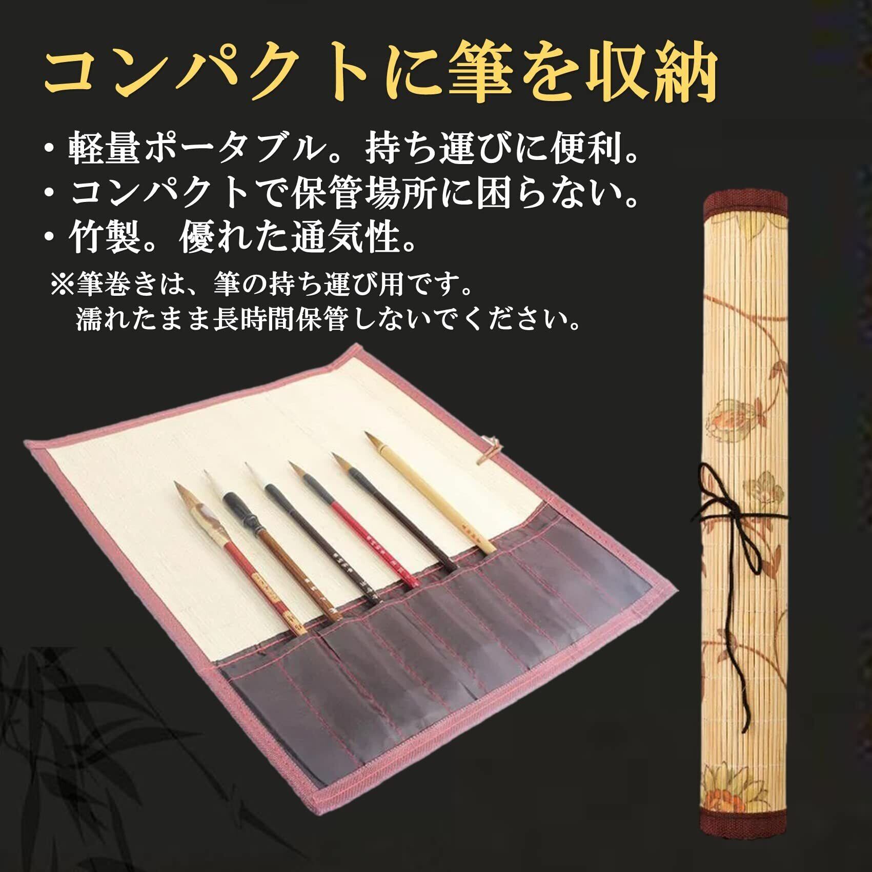 軽量ポータブルで筆の持ち運びの際に重宝される筆巻きです。独立した仕切りの収納ポケットで筆を収納しやすいのも特徴です。書道筆は勿論、油彩、水彩など絵画用の画筆にもご活用いただけます。