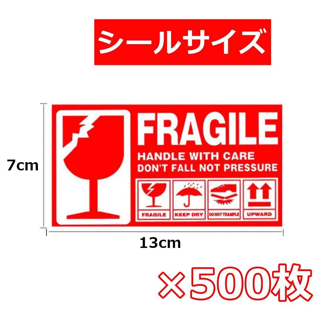 Rurumi フラジール ステッカー ラベル シール 500枚 セット 13×7cm 大きめ サイズ 大容量 われもの 破損 注意 取扱注意 荷札 FRAGILE 壊れ物 英語 表記 (1ロール 500枚)