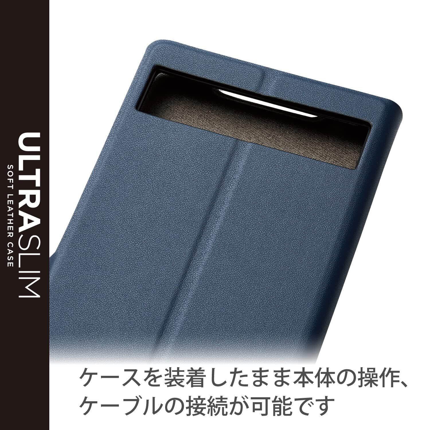 エレコム Google Pixel 6a ケース カバー 手帳型 レザー 薄型 超軽量 [UltraSlimシリーズ] マグネット開閉 カードポケット ネイビー PM-P221PLFUNV