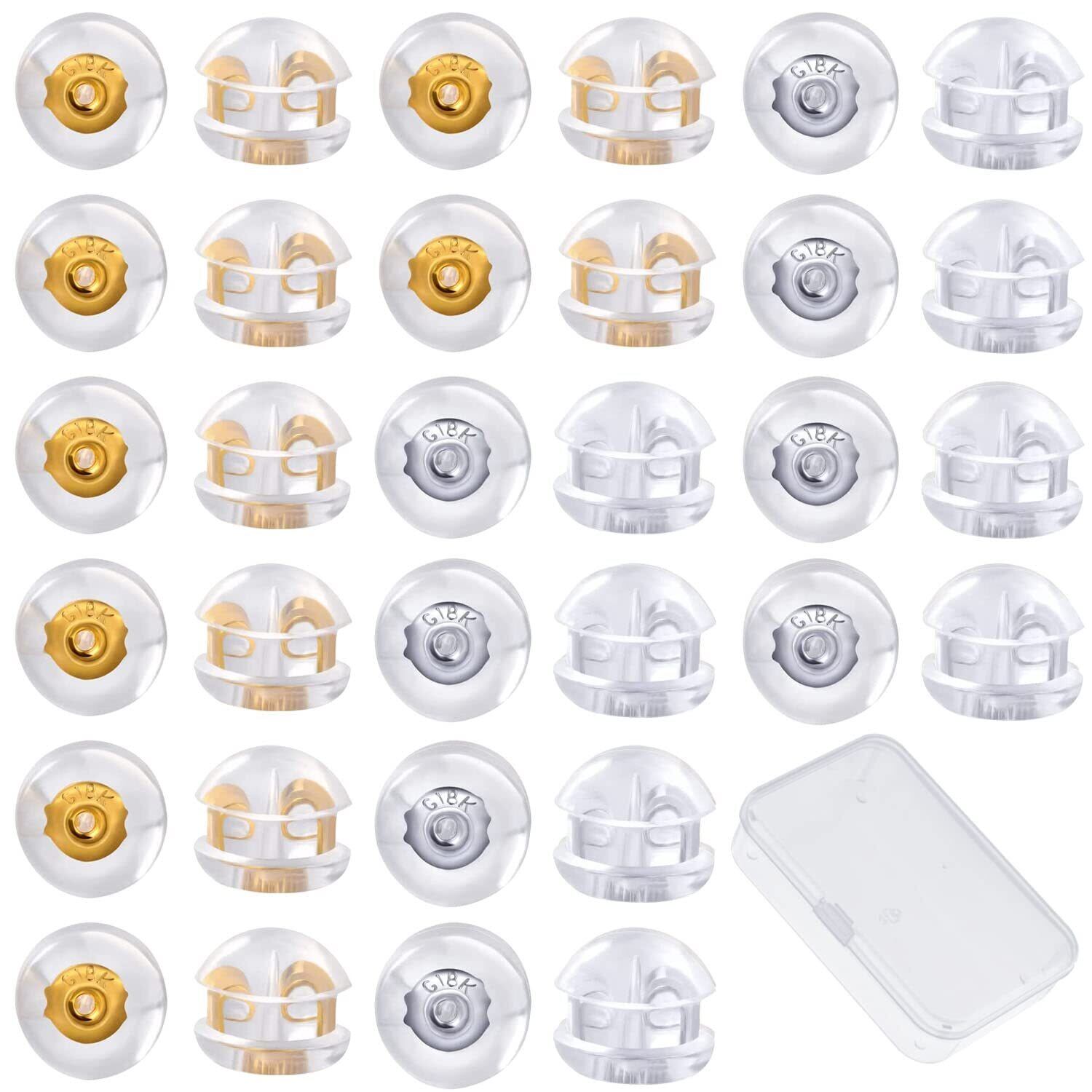 「ピアスキャッチ 落ちない」ピアス キャッチ 約0.65mm - 0.7mmポスト対応 32個 セット、18金メッキのロック+シリコン製。ピアスをおしゃれに楽しみたい方に最適なピアスキャッチです。耳元を美しく飾り、装着時の安定感を保ちます。