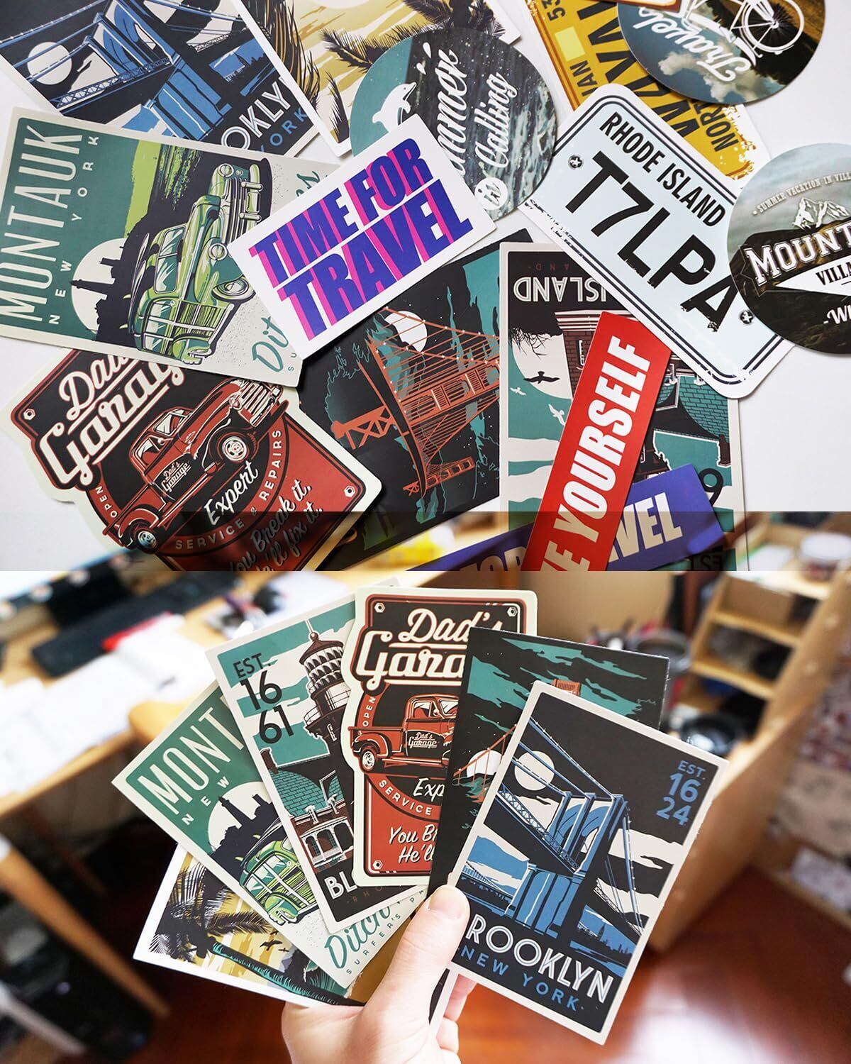【特価商品】Chileeany「35枚セット」 防水 ステッカー レトロ ビンテージ スーツケース 防水紙 - スーツケース、スケートボード、ノート、車、自転車、 パソコン(World Tour) | Premium Stage