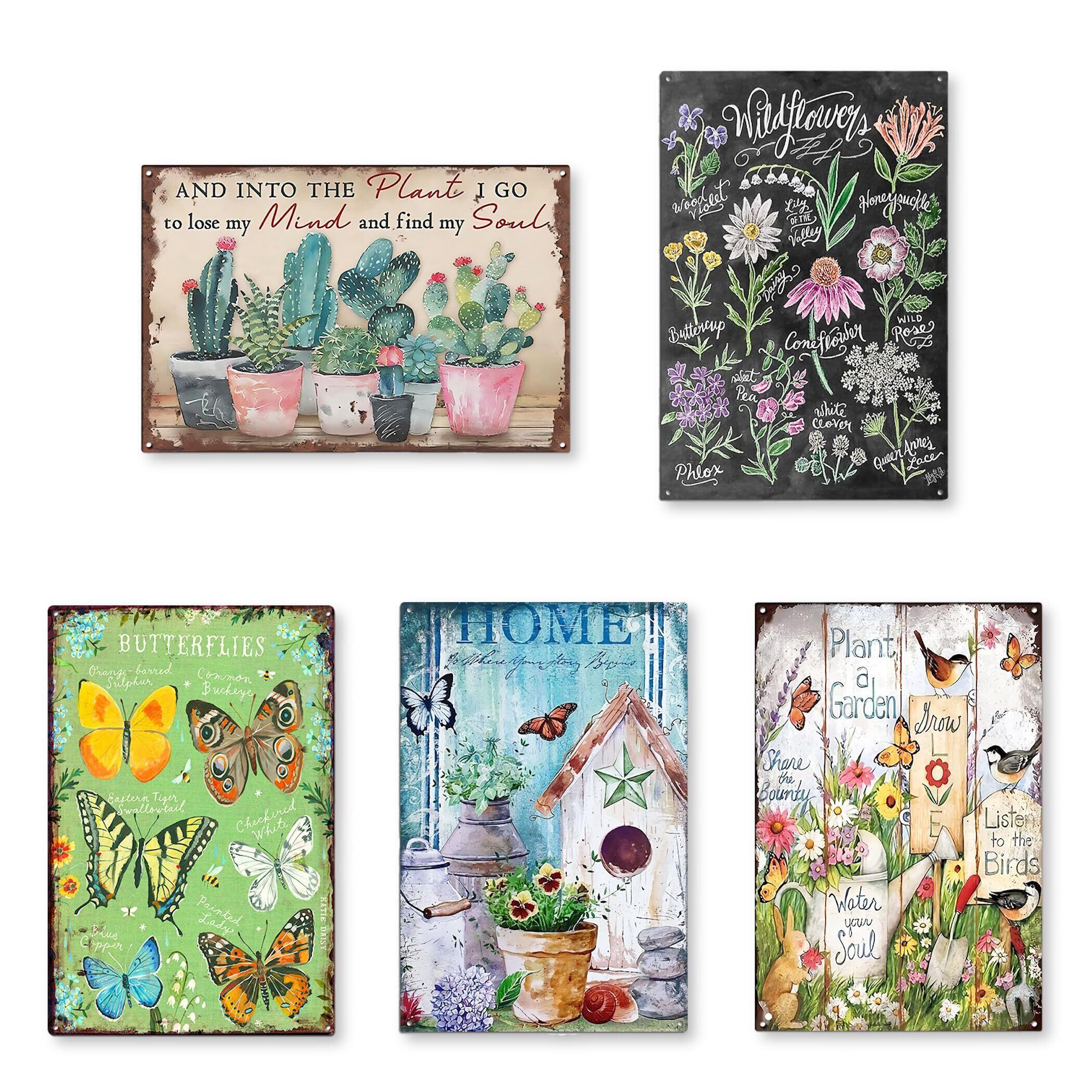 ブリキプレート : まるで時代を超えて復刻されたかのような洗練されたデザインが魅力で、どこか懐かしさを感じさせると同時に、洗練されたおしゃれな印象を与えます。5枚セットになっており、異なる場所に飾ることで、インテリア全体に統一感と個性をプラスできます。