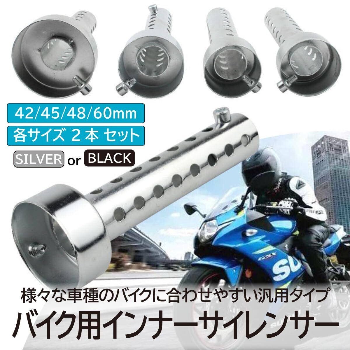 ENN LLC 汎用バイク用インナーサイレンサー 消音器 2本セット 42/45/48/60mmサイズあり (ブラック, 45mm)