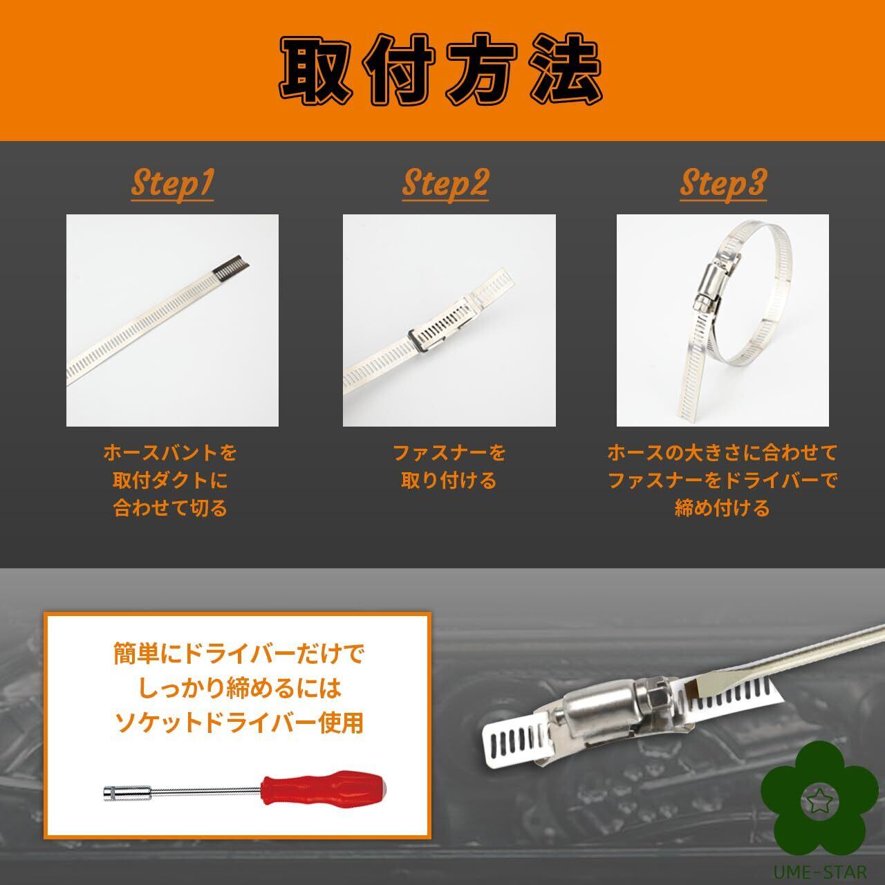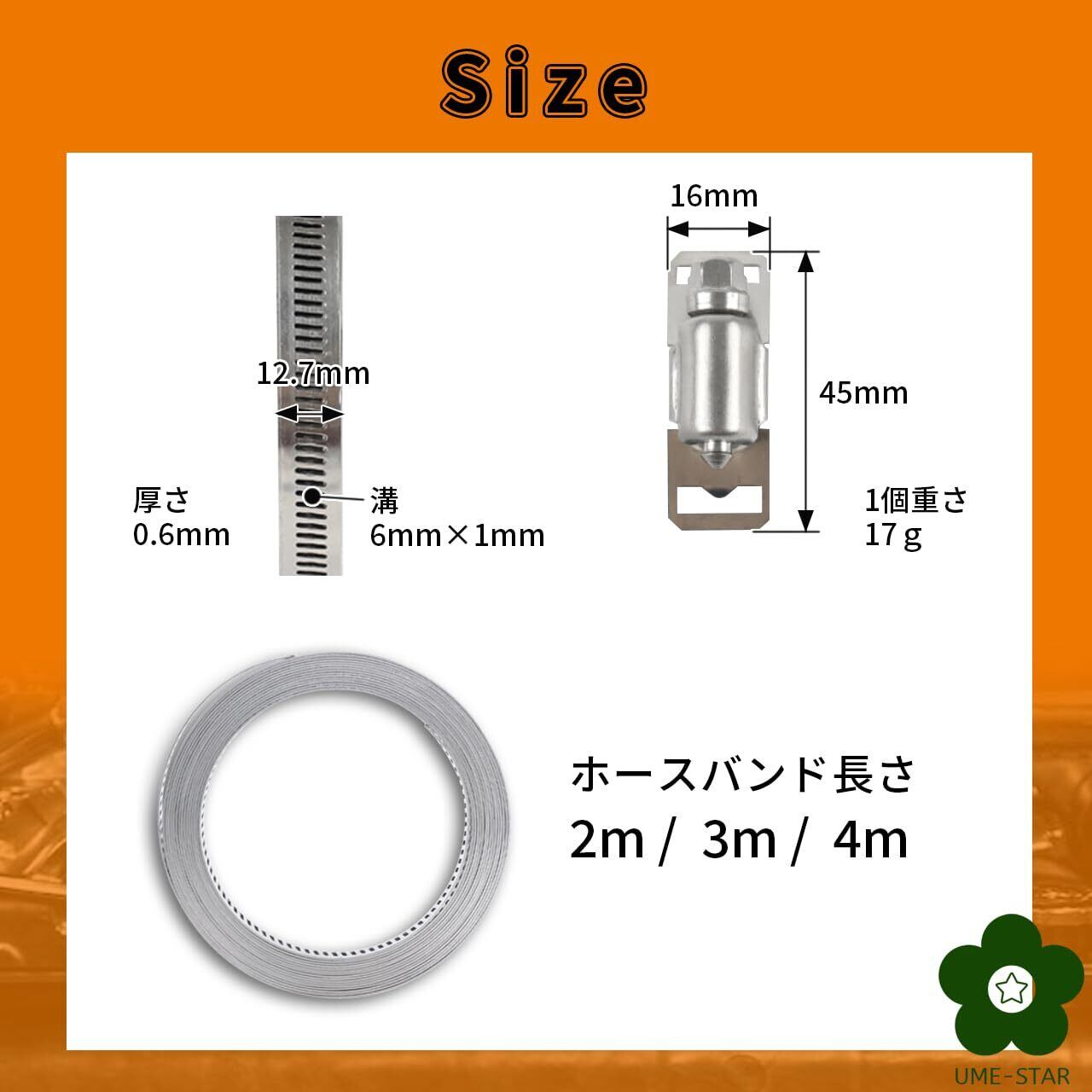 UME-STAR ホースバンド ステンレス クランプ バンド 12.7mm幅 自在バンド (長さ4m 留め具 8個)