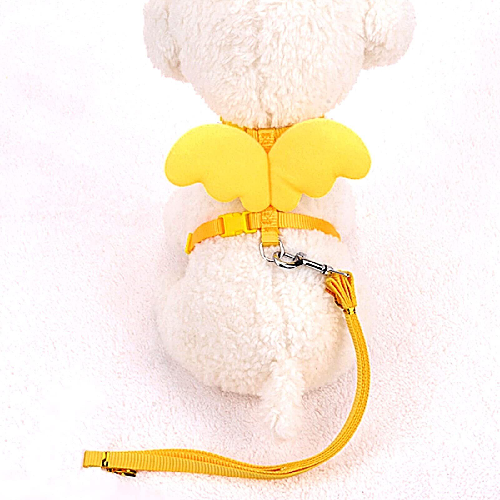 [TradeWind] ペット ハーネス リード 天使の羽 犬 猫 うさぎ 小型犬 フェレット キャットハーネス 小動物 インスタ映え お出掛け 散歩 ドッグラン(黄色XS)