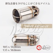 高い消音性能のインナーサイレンサーです。105mmと135mmの2サイズをご用意致しましたので、マフラーサイズ等によりお選びください。