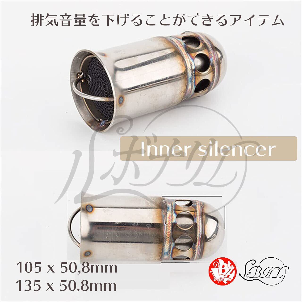 ルボナリエ インナー サイレンサー シルバー 105 x 50.8mm バッフル マフラー バイク 排気 音量 調整 オートバイ 触媒型 汎用 (シルバー 105 x 50.8mm)