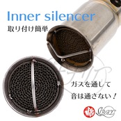 インナーサイレンサーは、マフラーの出口に取り付けることで、排気音量を下げることができるアイテムです。脱着できるため、大音量で迫力のある排気音で、ご近所迷惑を気にされる方におすすめです