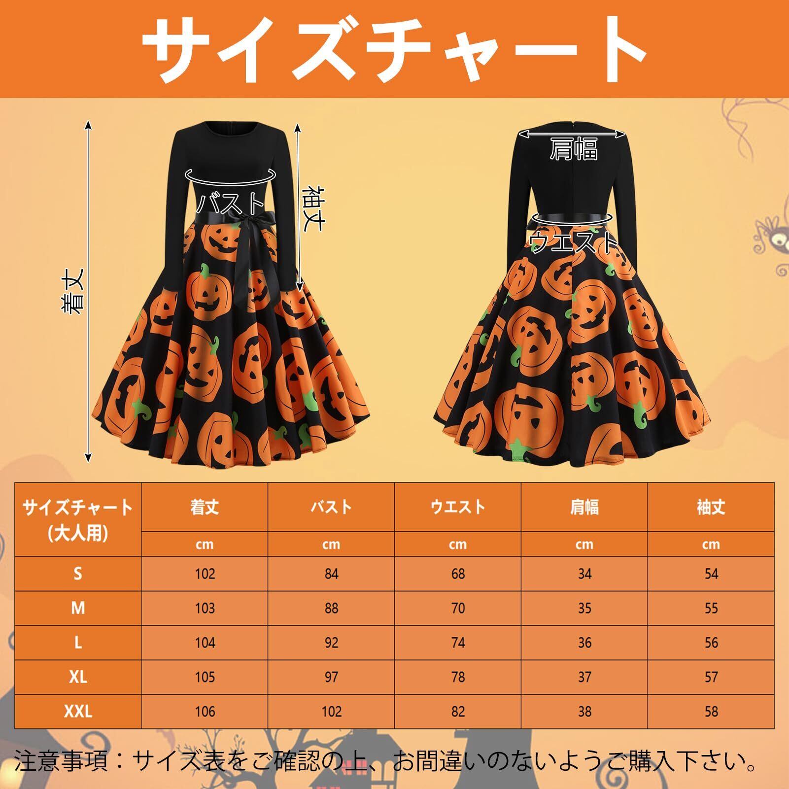 [Matreeglam] ハロウィン 魔女 ワンピース カボチャ柄 可愛い 魔女 コスプレ レディース 大人用 長袖 ドレス ハロウィン コスプレ パーティー 衣装 3点セット