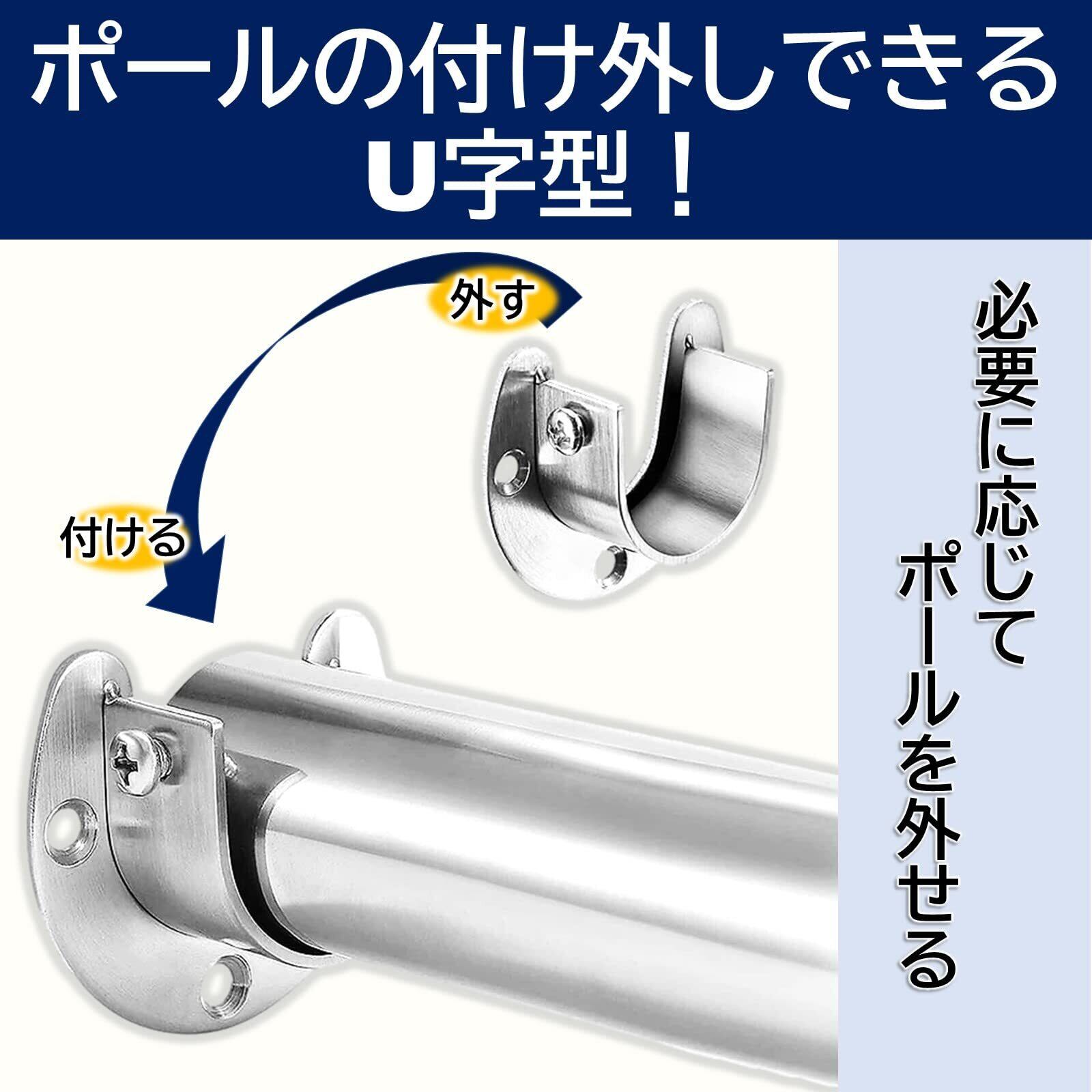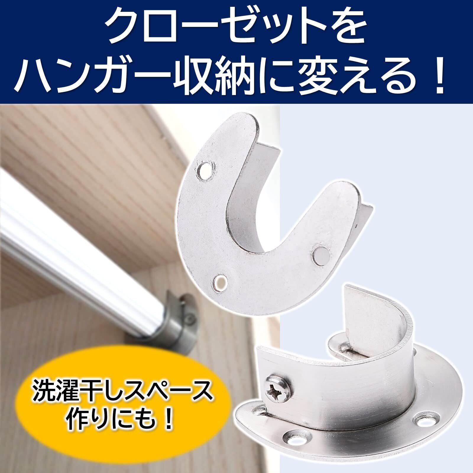 ポールやパイプを受けて固定できる、ポールソケット。クローゼットや洗面脱衣所、窓際などにポールを設置すれば、洋服や物干しハンガ―、カーテンなどを掛けることができます。必要に応じてポールの付け外しできる、U字型です。ポールが外れないようにねじ止めすることもできます。