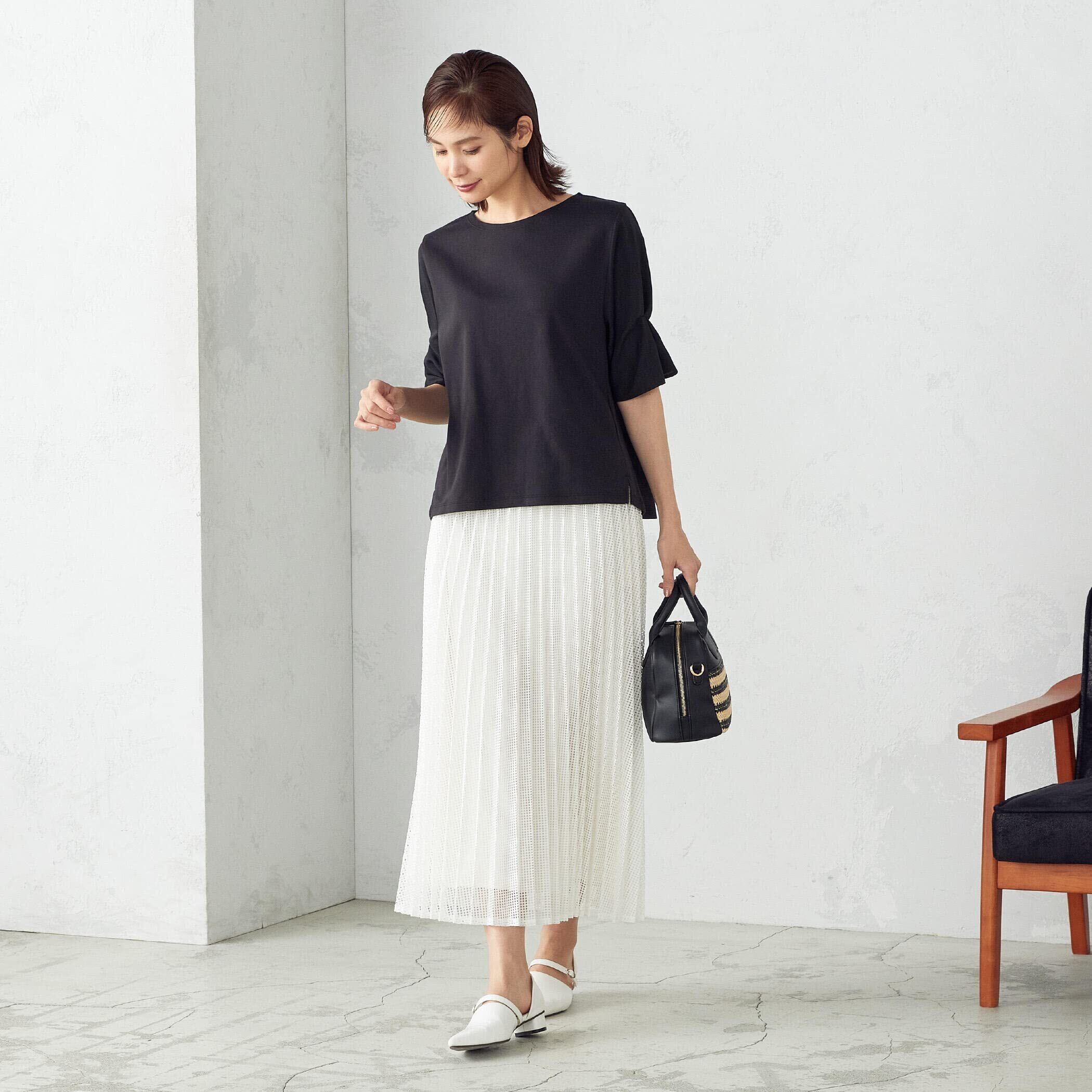 [コムサイズム] メッシュ レース プリーツスカート 12-50FC06-203
