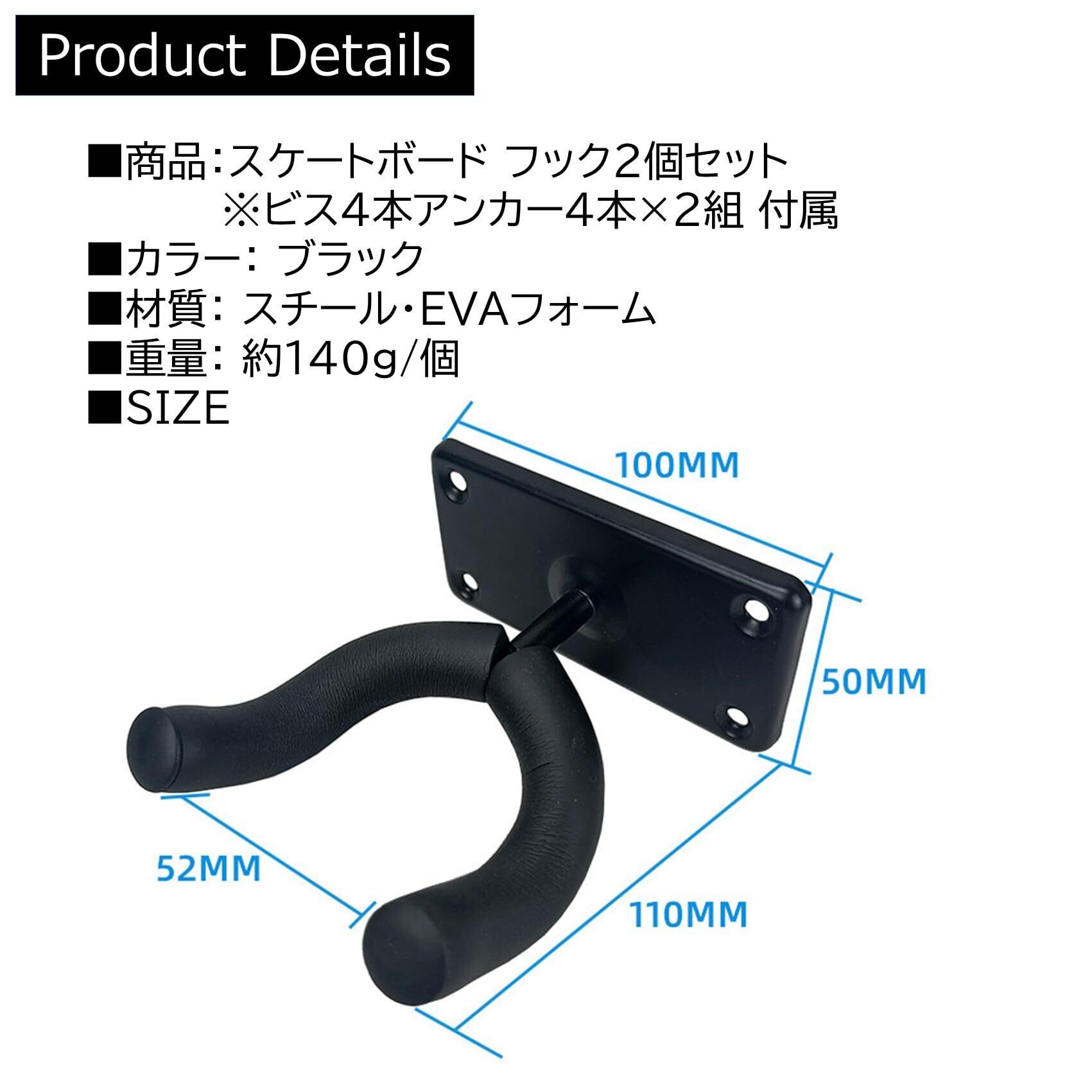 大切なスケートボードを壁に掛けて収納展示するスケートボード フックです。インテリアとしてもご利用いただけます。2個セット、固定用ビス、アンカー付きです。