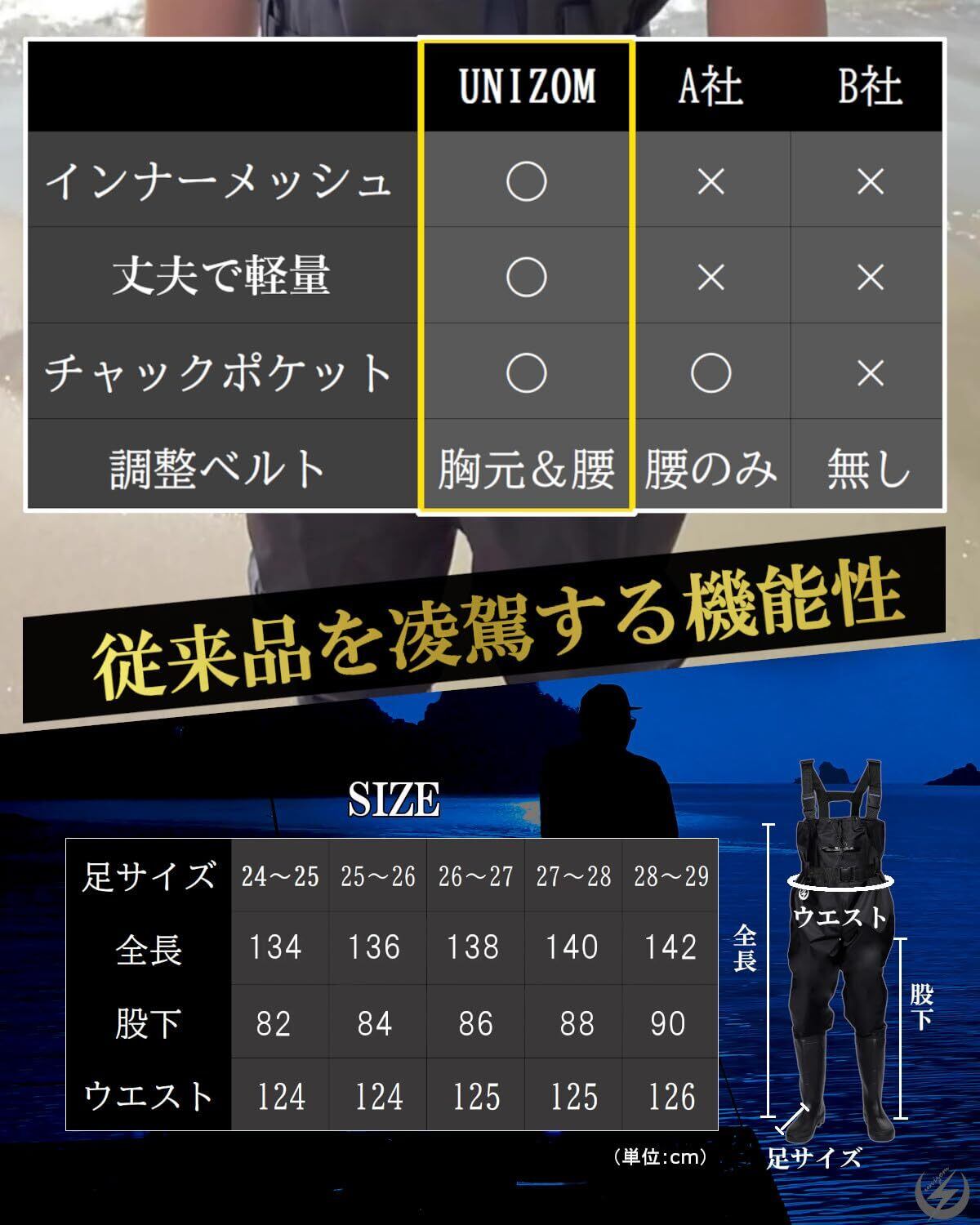 【2022最新】[unizom] ウェーダー 釣り 胴長 長靴 【インナーメッシュ】【ベテランアングラー推奨】 ラジアルソール 防水 スーツ チェストハイ フィッシングウェーダー | Premium Stage