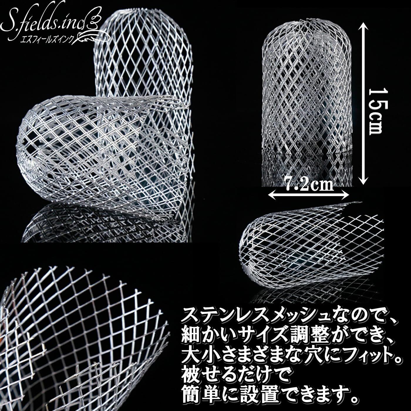 ステンレスメッシュなので、細かいサイズ調整ができ、大小さまざまな穴にフィット。被せるだけで簡単に設置できます。