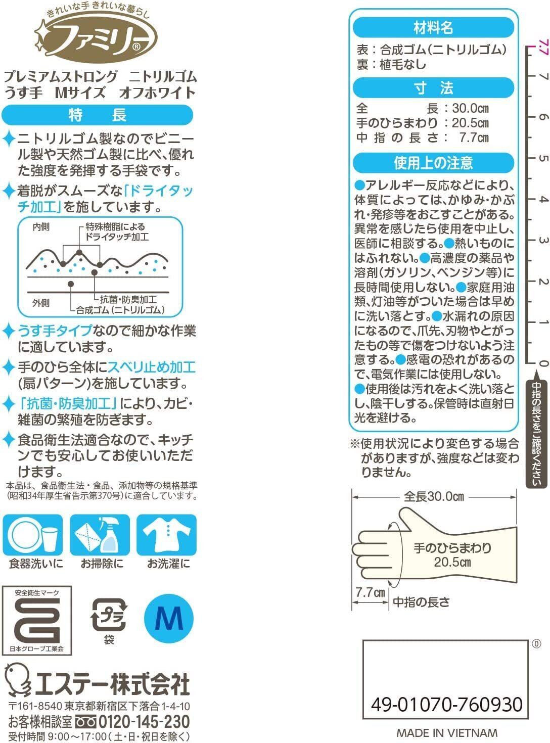【在庫セール】ファミリー [まとめ買い] プレミアムストロング 家庭用手袋 ニトリルゴム 手袋 Mサイズ オフホワイト×5個 薄手 食器洗い 掃除 洗濯 食品衛生法適合 | Premium Stage