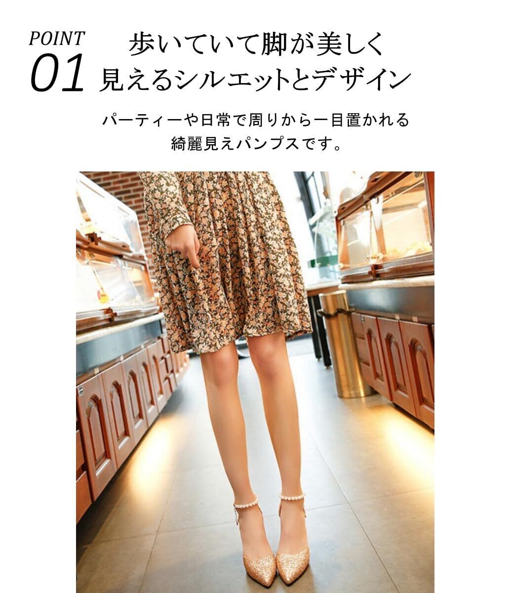 [Lopis] パンプス レディース 靴 6cm ヒール 履きやすい おしゃれ シューズ 美脚 脚長 ストラップ ラメ 軽量 歩きやすい 痛くない