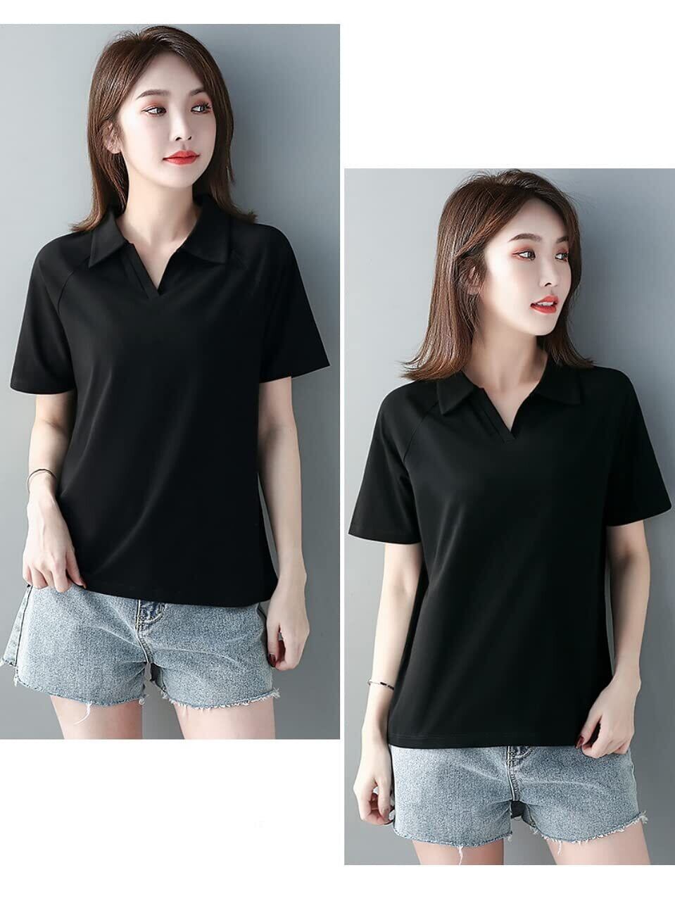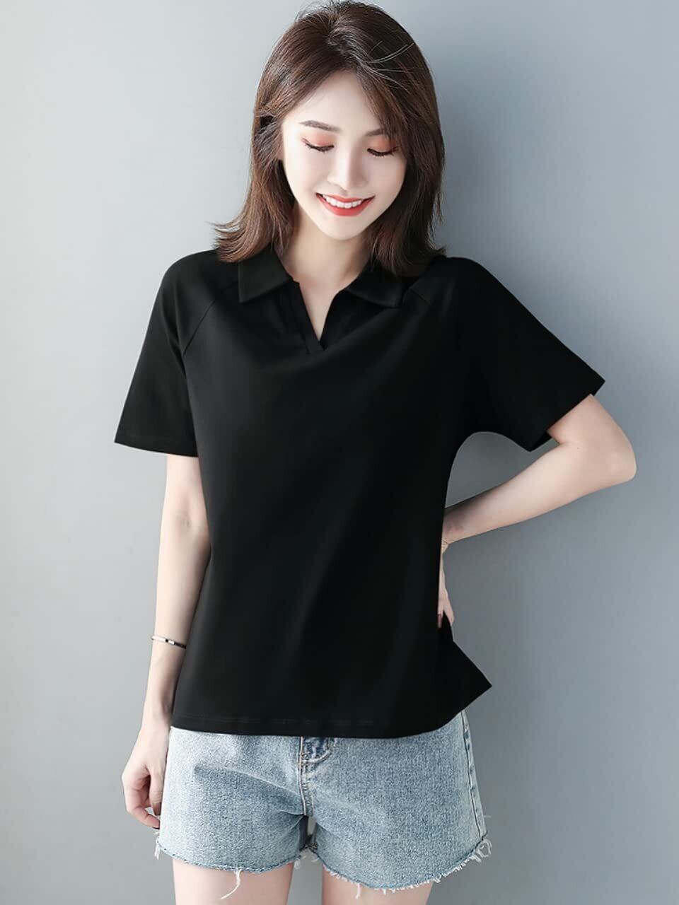 [ブブ オーハナ] ポロシャツ Tシャツ 無地 襟付き Vネック ボタンなし キレイメ 半袖 レディース