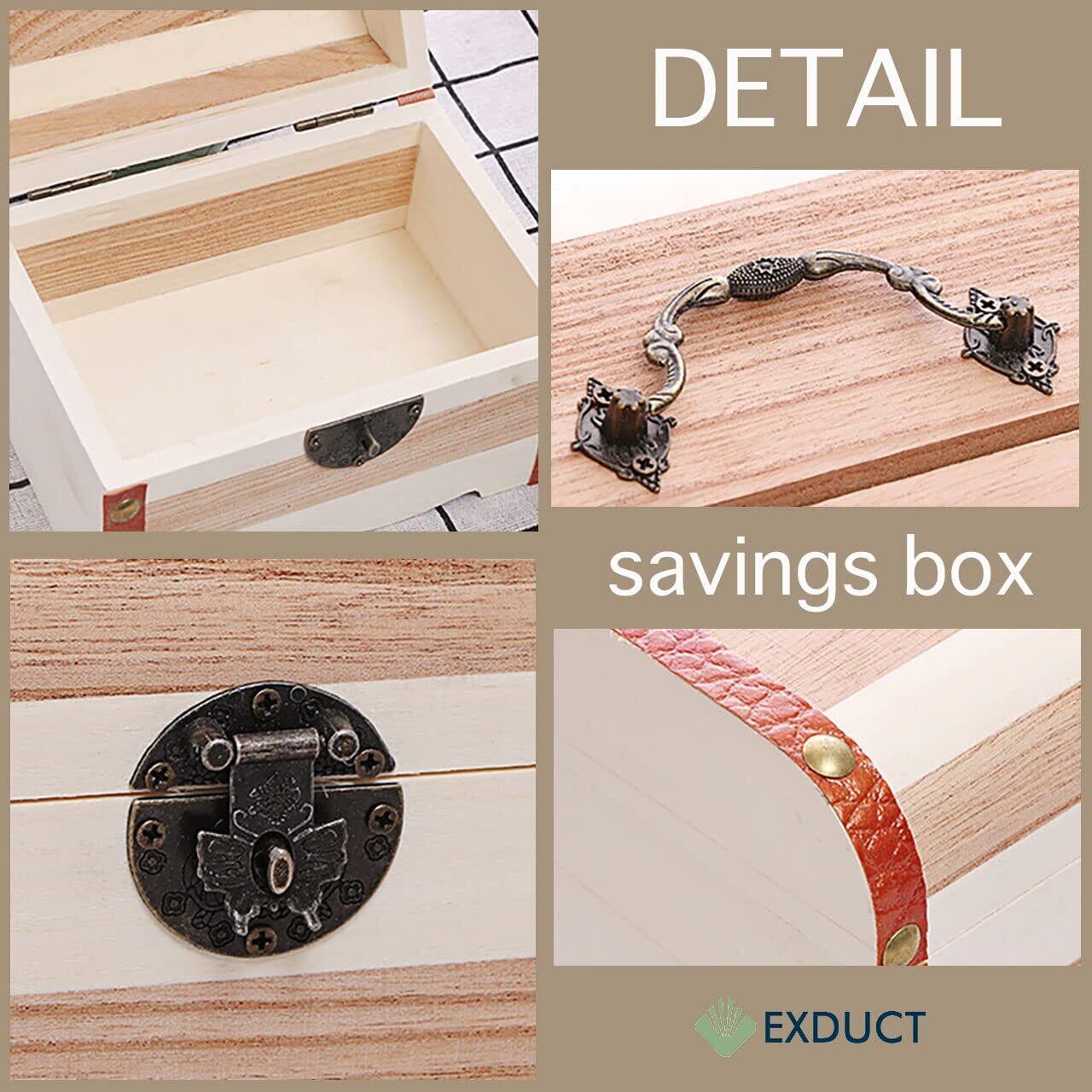 EXDUCT 貯金箱 宝箱 鍵付き 大きい 小物入れ お札 おもしろ アンティーク 木箱レトロ インテリア おしゃれ 賽銭箱 面白い (ライトブラウン)
