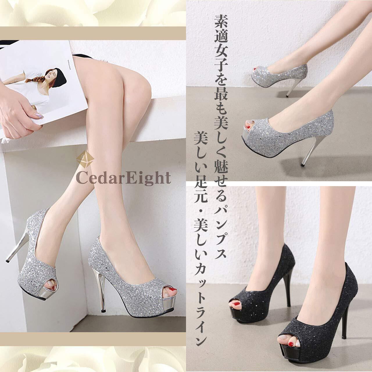 [シダーエイト] 美脚 オープントゥ ハイヒール レディース ピンヒール ラメ ヒール 12㎝