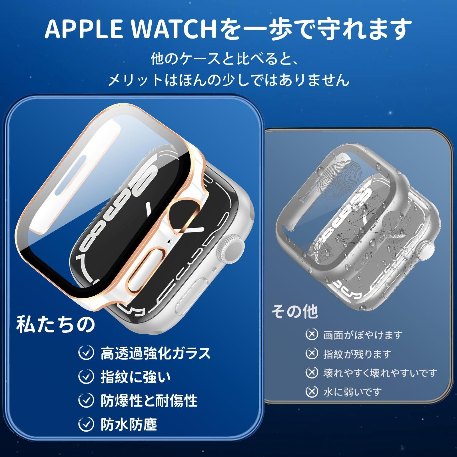 TEMEDO 対応 Apple Watch ケース Series 10 アップルウォッチ カバー PC素材 防水カバー 3D直角エッジデザ メッキ加工 Apple Watch カバー 全面保護 二重構造 アップルウォッチ ケース ガラスフィルム 一体型 高耐久 高透過率 装着簡单(42mm,光沢のホワイト+ローズゴールド)