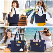 【商品仕様】トートバッグサイズ:約高さ32cm×幅34cm×マチ14cm。持ち手の高さ:25cm。重さ:約650g。<ポケット>メインポケット*1、内側ファスナーポケット*1、内側ポケット*1、フロントファスナーポケット*1、マジックテープポケット*1、サイドポケット*2。<付属品>ショルダーストラップ、取り外し可能な雲飾り。