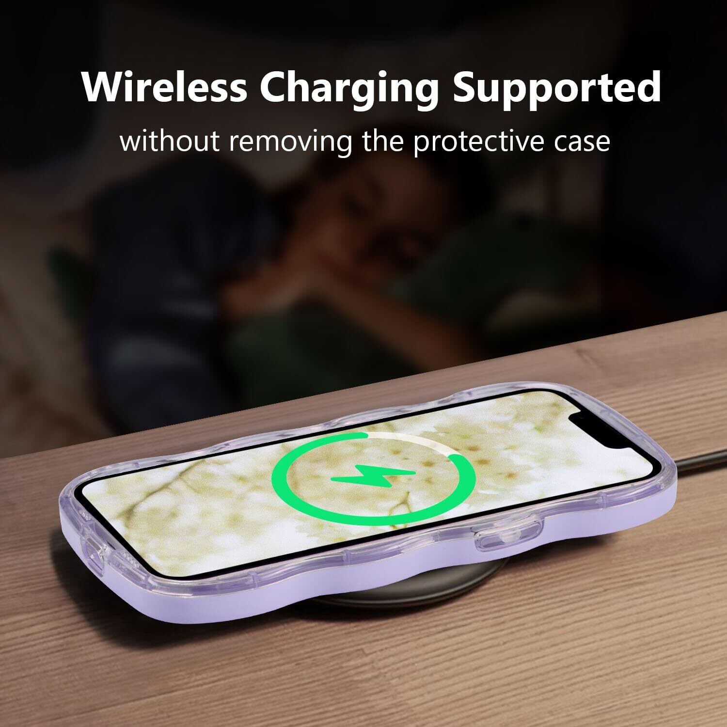 【精確なカットアウト】精密なカットアウトにより、すべてのボタン、ポート、スピーカー、カメラ、その他の機能に簡単にアクセスできます。携帯電話ケースを付けたままでもワイヤレス充電です。