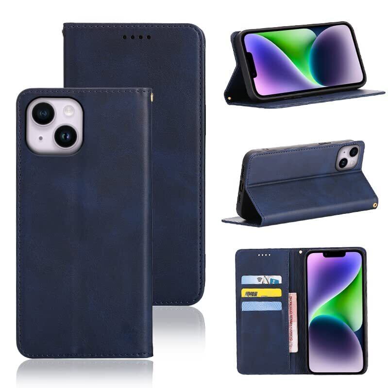 iPhone 14 ケース 手帳型 iPhone14 手帳型 ケース カバー PUレザー カード収納 財布型 耐衝撃 ケース マグネット スタンド機能付き 5色 (iPhone14 ケース手帳型) (深い青)