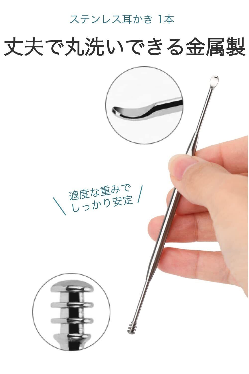 ステンレス製の耳かき 1本 スプーンとスクリュー 2種類の先端 丸洗いできて清潔に保てます 持つ部分にヘコミがあるので向きがわかりやすい