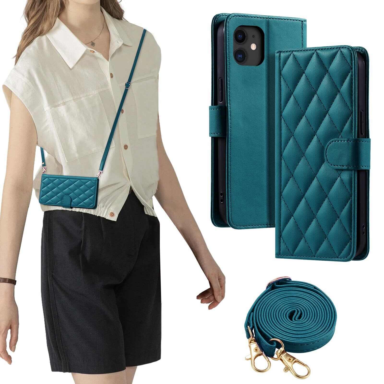 【数量限定】laddutoi FOR iphone11 ケース iphone 11 ケース 手帳型 おしゃれ ストラップ付き スタンド機能 カード収納 軽量 薄型 耐衝撃 高級PUレザー 滑り防止 財布型 内蔵マグネット 開閉式 チェック柄 上質 耐摩擦 マグネット式 肩掛け 斜め掛けーグリーン | Premium Stage