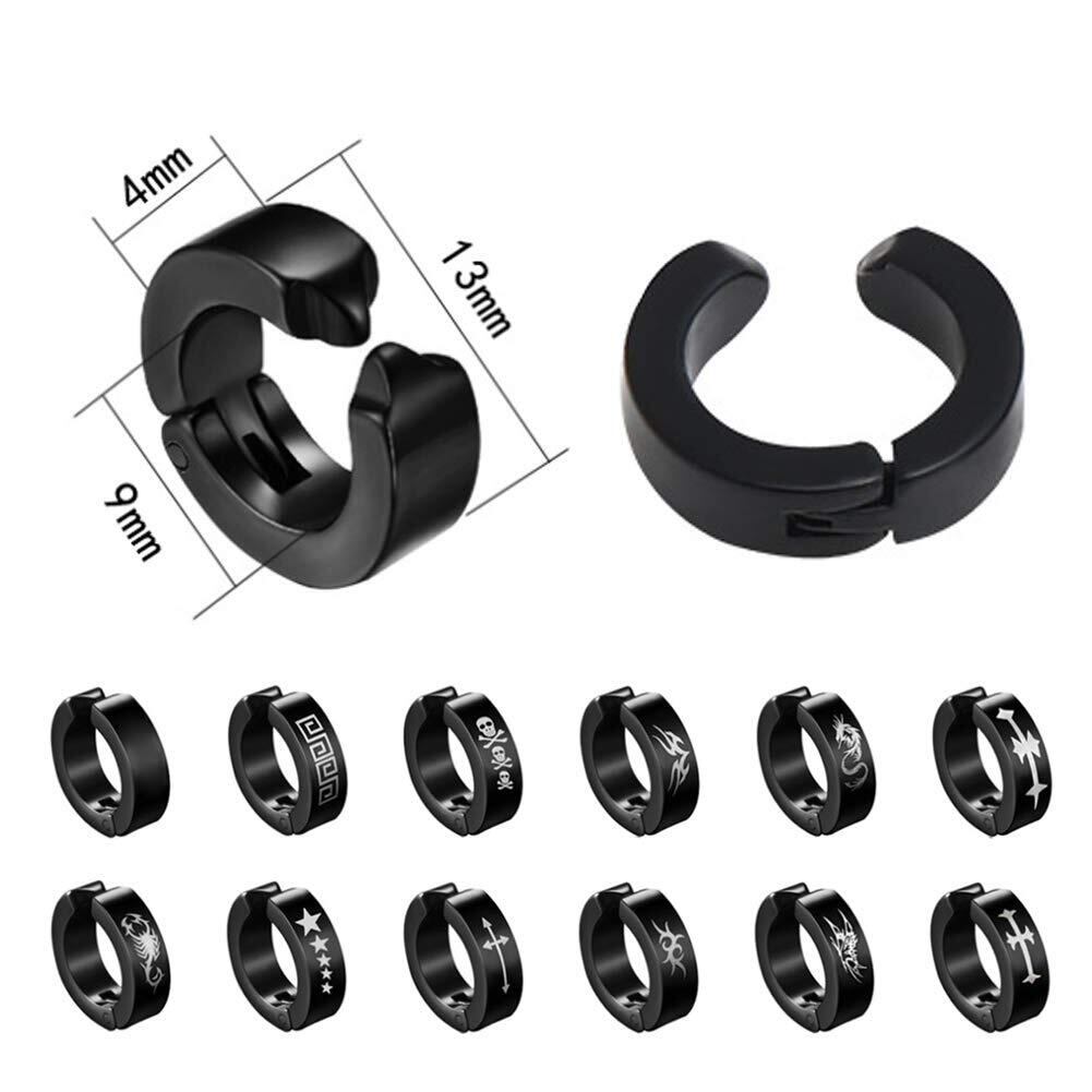 【在庫セール】YOLOOメンズ ノンホール フープピアス シンプルリング イヤーカフ フェイクイヤリング 金属アレルギー対応 サージカルステンレス製 ブラック 十字架 髑髏 星 人気柄12種YL-56 (スタイル7) | Premium Stage
